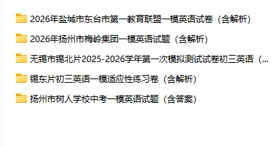2026江苏十三市初三英语零模试卷下载