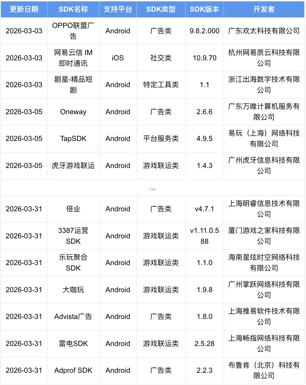 史宾格大数据平台监测,发现有31款第三方SDK已更新了最新版本。为了确保您的应用程序的稳定性和安全性,我们建议开发者尽快更新至最新版本,能够有效规避潜在的风险。