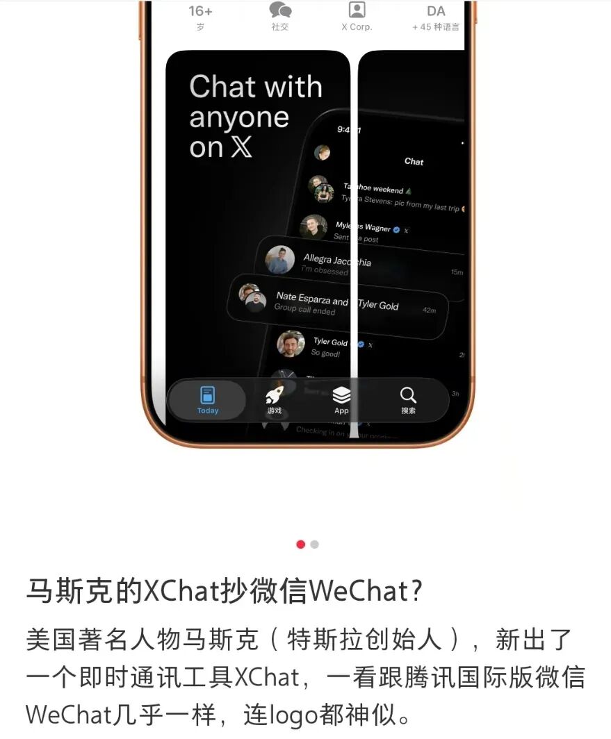 从 2022 年收购推特改名 X,就想把 X 做成西方版 WeChat+++,聊天、支付、生活服务一把抓,这次推出这个试试水?!