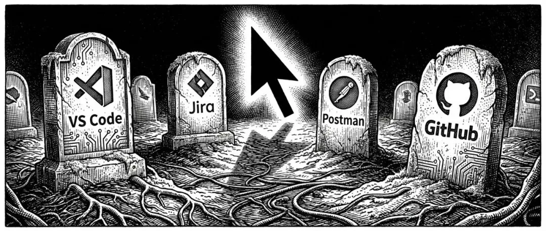 画面很清楚:传统开发工具链正在被 AI 编程代理整合吞噬。