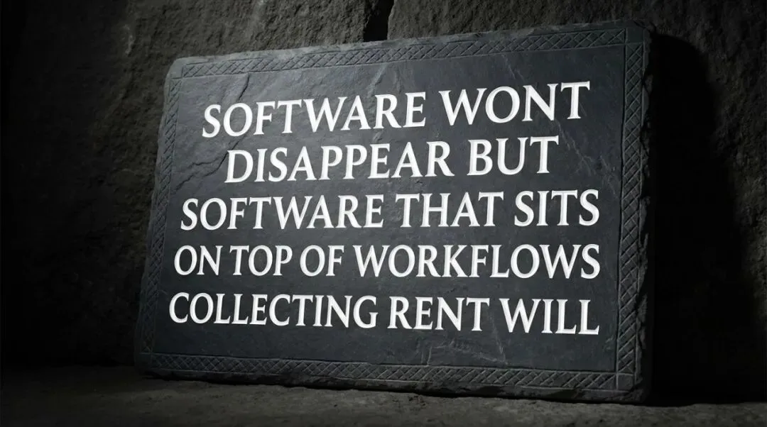 软件不会消失,但"坐在工作流上收租"的软件会。未来值钱的,不是帮你管理工作的工具,而是帮你完成工作的 Agent——以及帮 Agent 完成工作的基础设施。