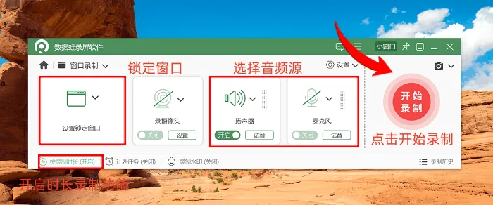 使用数据蛙录屏软件的操作流程如下: