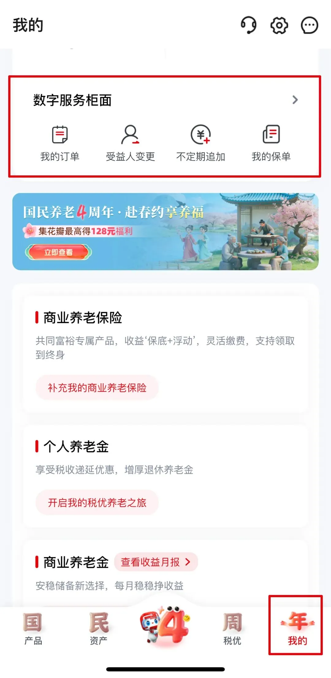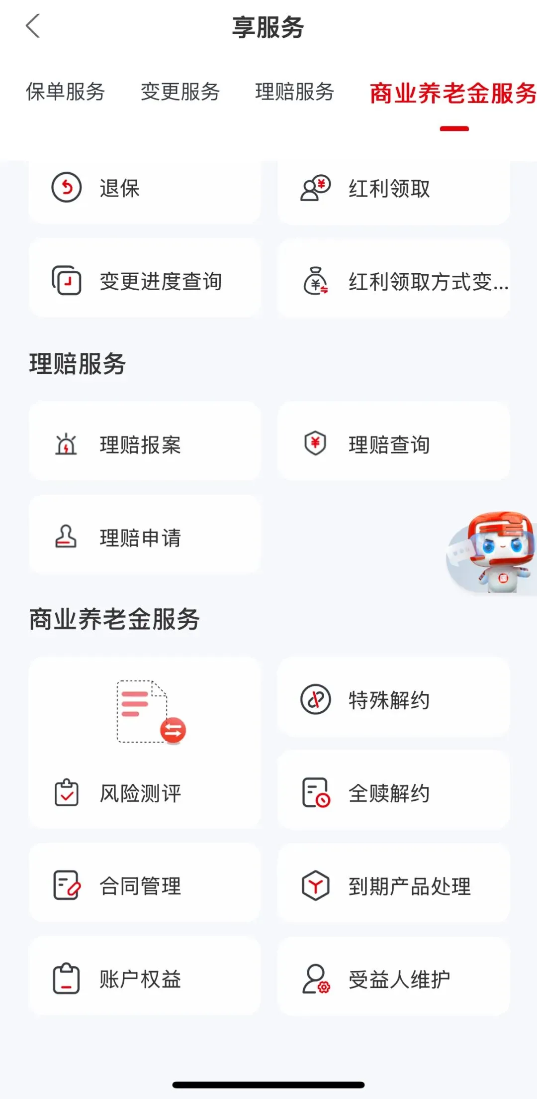 现在,您可告别繁琐的线下奔波,App2.0将多项商业养老金服务搬到了线上。无论是受益人变更、产品持有期满处理,还是全渠道解约撤单,都可以在App内按提示完成,流程清晰,办理起来更便捷。