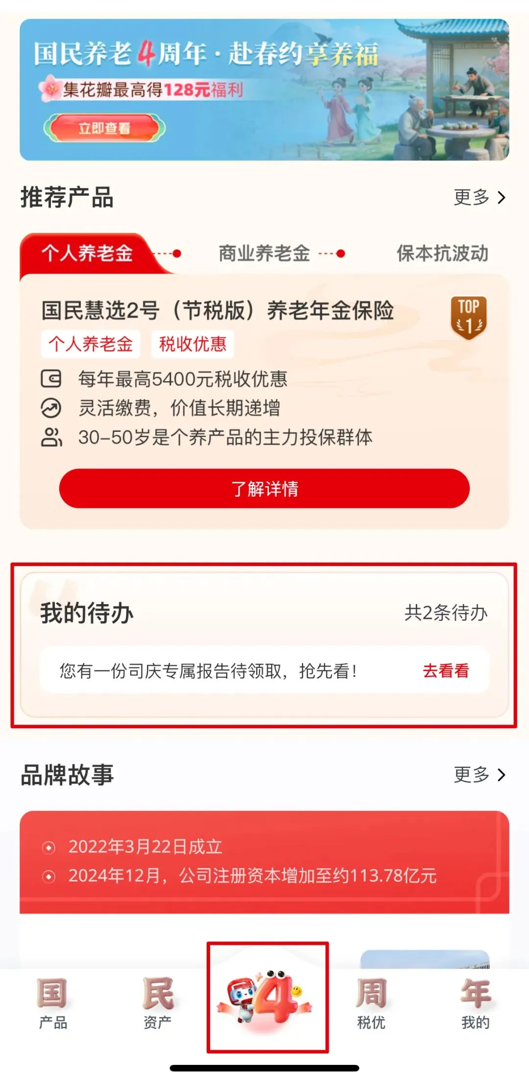 春暖花开,正是启程的好时节。国民养老App,伴您开启省心养老之旅。下一期将带您感受App2.0的体验升级与权益升级,包括“国民时间保单”的温情故事、国风视觉焕新、会员积分体系等,敬请期待~