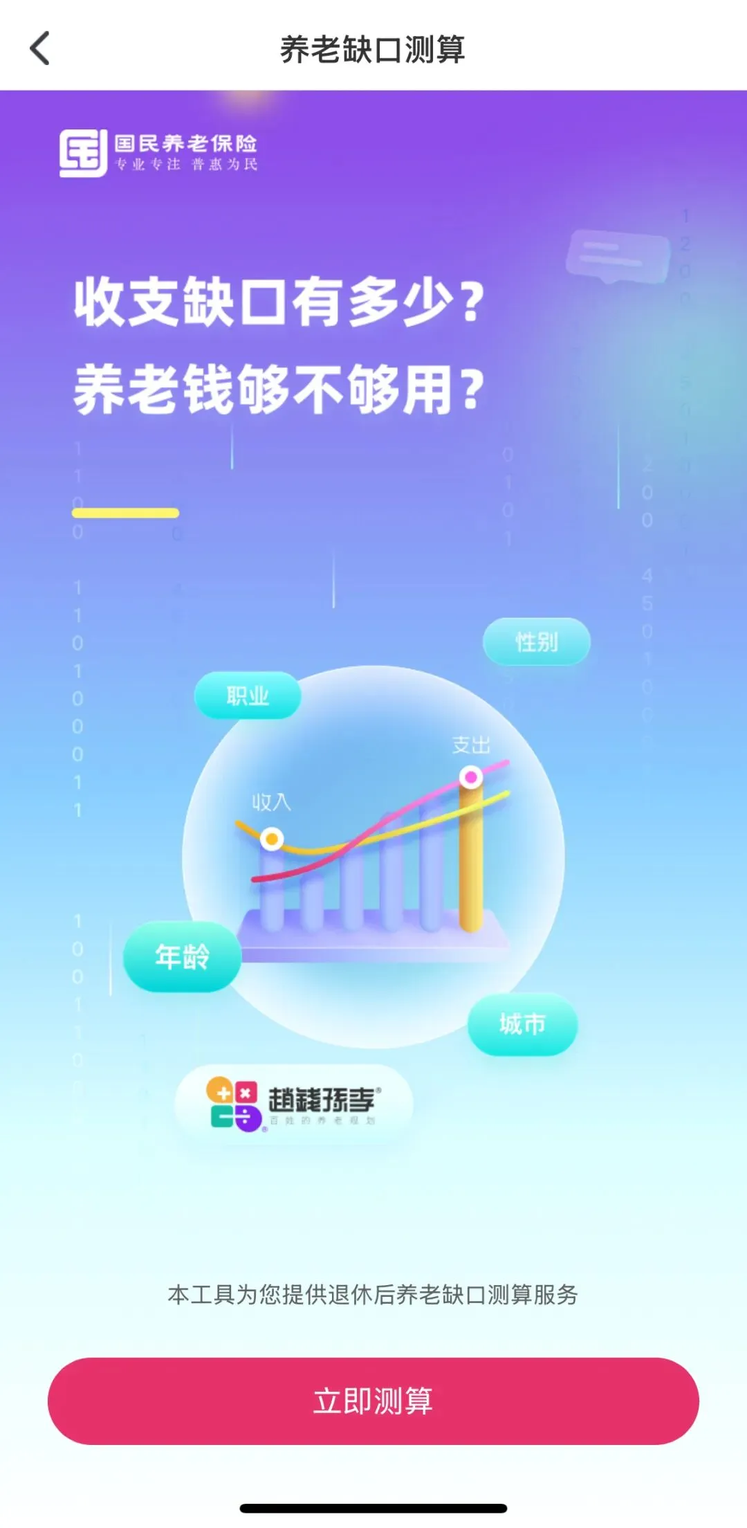 国民养老App2.0,从个人养老金的全流程线上办理,到商业养老金多项服务的线上化,再到智能提醒的主动关怀,让您的养老管理更省心;从线上线下产品互联,到一键测算养老缺口,再到品牌故事的透明呈现,让您的养老决策更从容。