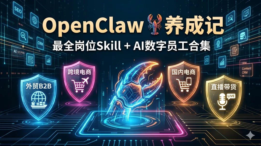 OpenClaw🦞养成记之:最全岗位Skill + AI数字员工合集(外贸B2B / 跨境电商全链路 / 国内电商 / 直播带货)
