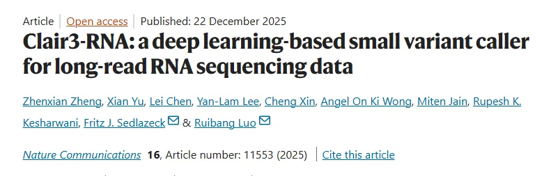 2025 年 10 月至 12 月,香港大学工程学院计算与数据科学学院罗锐邦教授团队,历时 7 年技术攻关,成功研发两款深度学习算法 ——ClairS-TO与Clair3-RNA,相关成果连续发表于国际顶级期刊《Nature Communications》。该团队深耕基因组测序分析领域,此前研发的 Clair3 算法已成为行业标杆,获牛津纳米孔技术公司官方推荐。