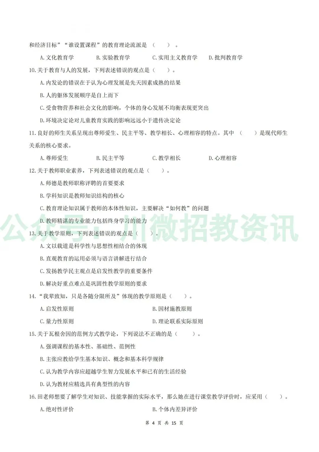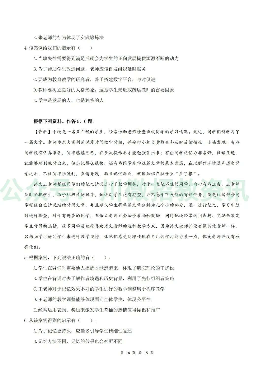 【2014-2025连续12年 四川教师公招笔试真题】