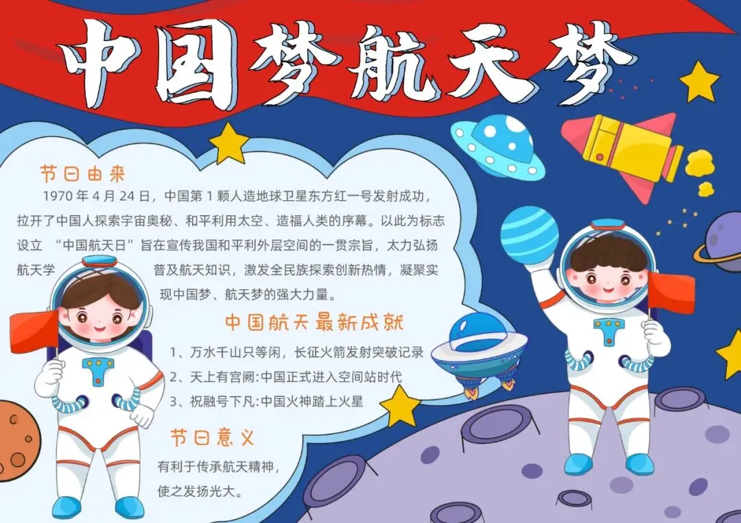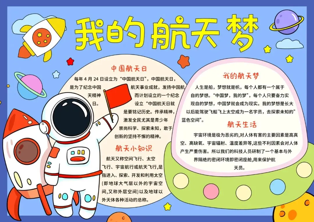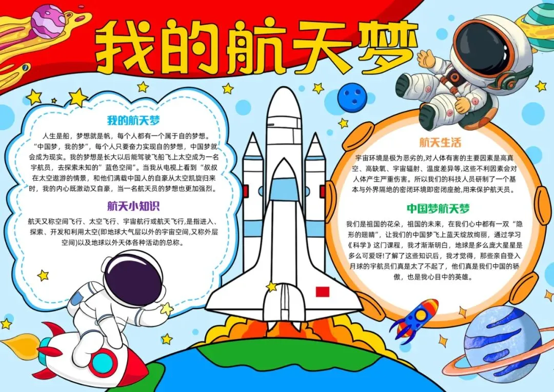 蓝红色卡通我的航天梦航天科技小报手抄报中国航天日