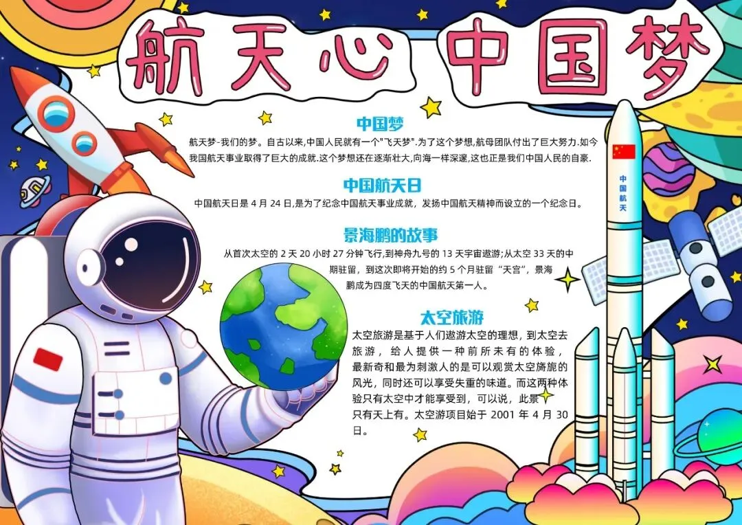 彩色手绘我的航天梦手绘小报小学生手抄报中国航天日