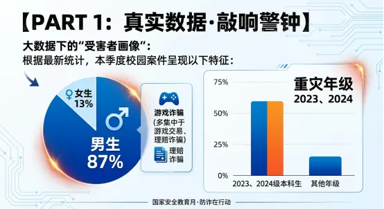 高危群体: 男生占比高达 87%(多集中于游戏交易、理赔诈骗)。