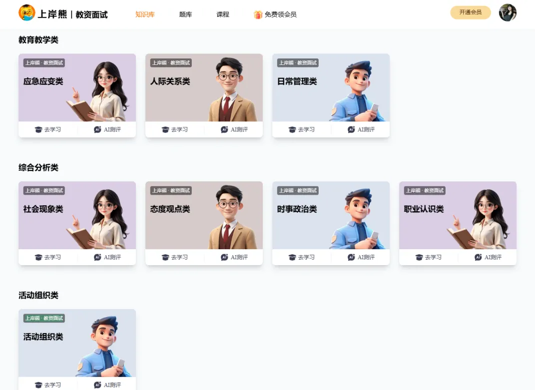 题库严格按照教资面试大纲整理,分类清晰、直击考点: