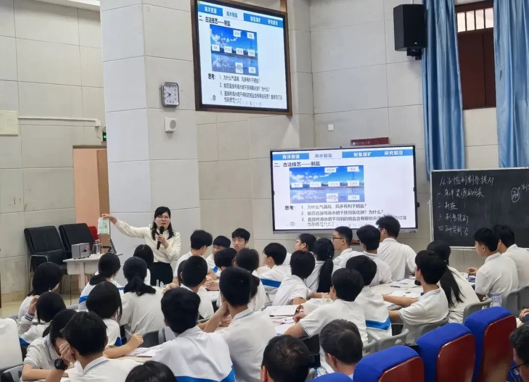 惠阳区新圩中学张凤梅老师带来《从制盐到制氢提矿——AI助力探究海洋资源的综合利用》一课,立足惠州海洋资源特色,将古法技艺与现代科技结合,用 AI 拓展资源利用前沿知识,落实了学生的核心素养。