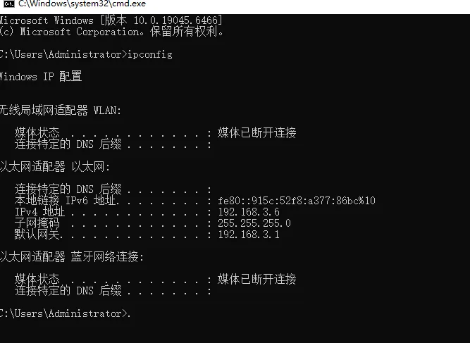 IPv4 地址 . . . . . . . . . . . . : 192.168.3.6