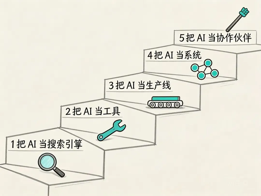 我把 AI 使用者分成 5 个段位。不是为了制造焦虑,而是为了让你知道自己在哪,下一步该往哪走。