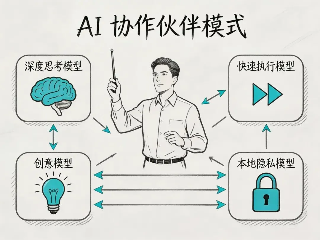 你不是在用一个 AI,而是在用一个 AI 团队。Claude 负责深度思考,ChatGPT 负责快速执行,Gemini 负责创意灵感,本地模型负责敏感数据。