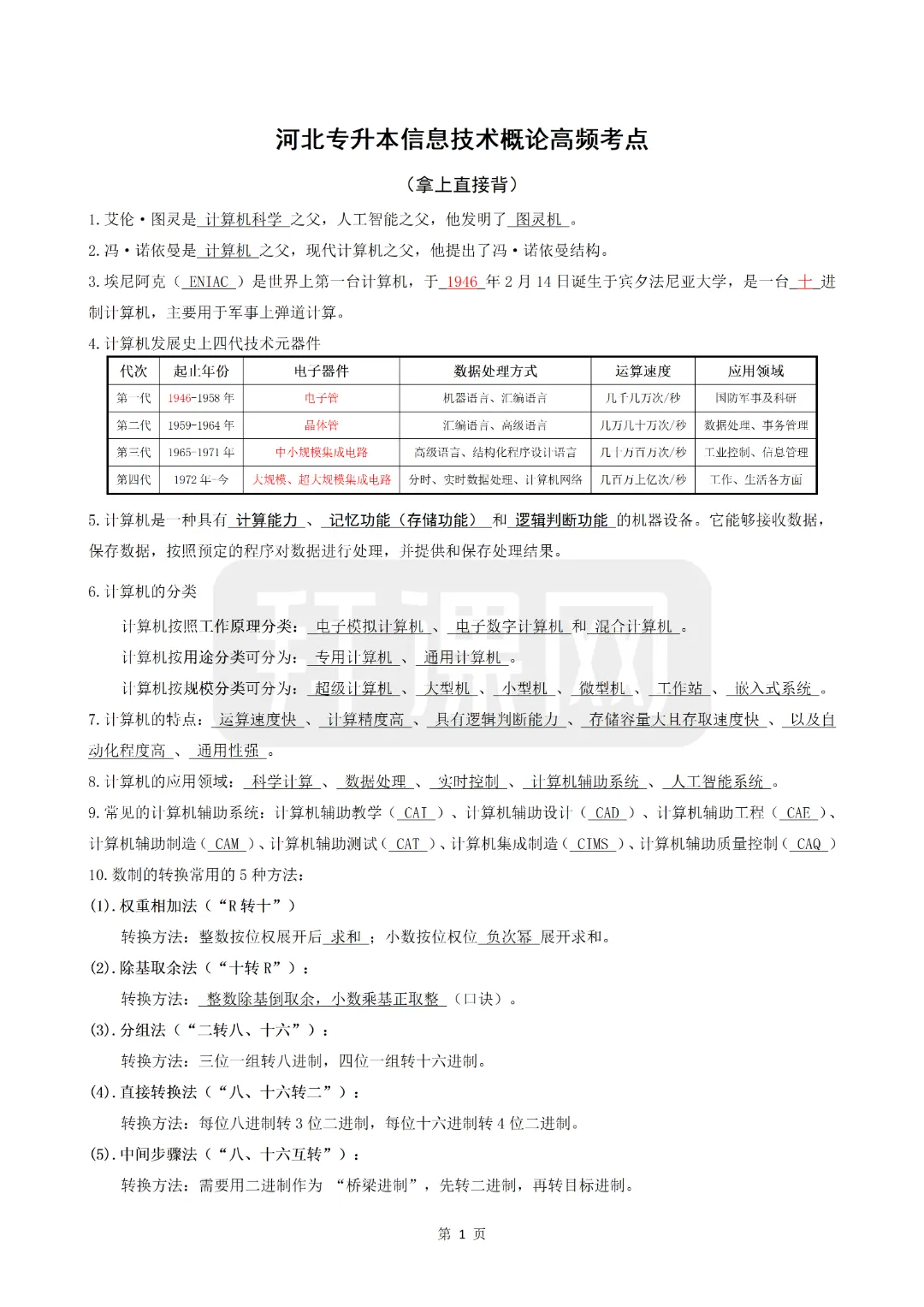 【可下载打印】河北专升本《信息技术概论》考前小抄考试倒计时5天时间宝贵肯定要给大家上点“狠货”止境老师整理了《信息技术概论》考前小抄拿到可以直接背的高频考点部分内容如下,完整版(共17页)可下载pdf打印↓↓↓由于篇幅有限,仅展示部分截图,完整版请下载pdf查看~领取方式扫描二维码添加学姐领取考前小抄pdf版可自行下载打印【专升本必刷题】重磅上线【视频题库】,每道题都是老师精选出来的,都有文字版解析和视频解析(注:视频解析需要次数包,现在开通会员可赠送少量次数包,用完后需单独购买,会做的题可以不看视频解析,看文字解析足矣)