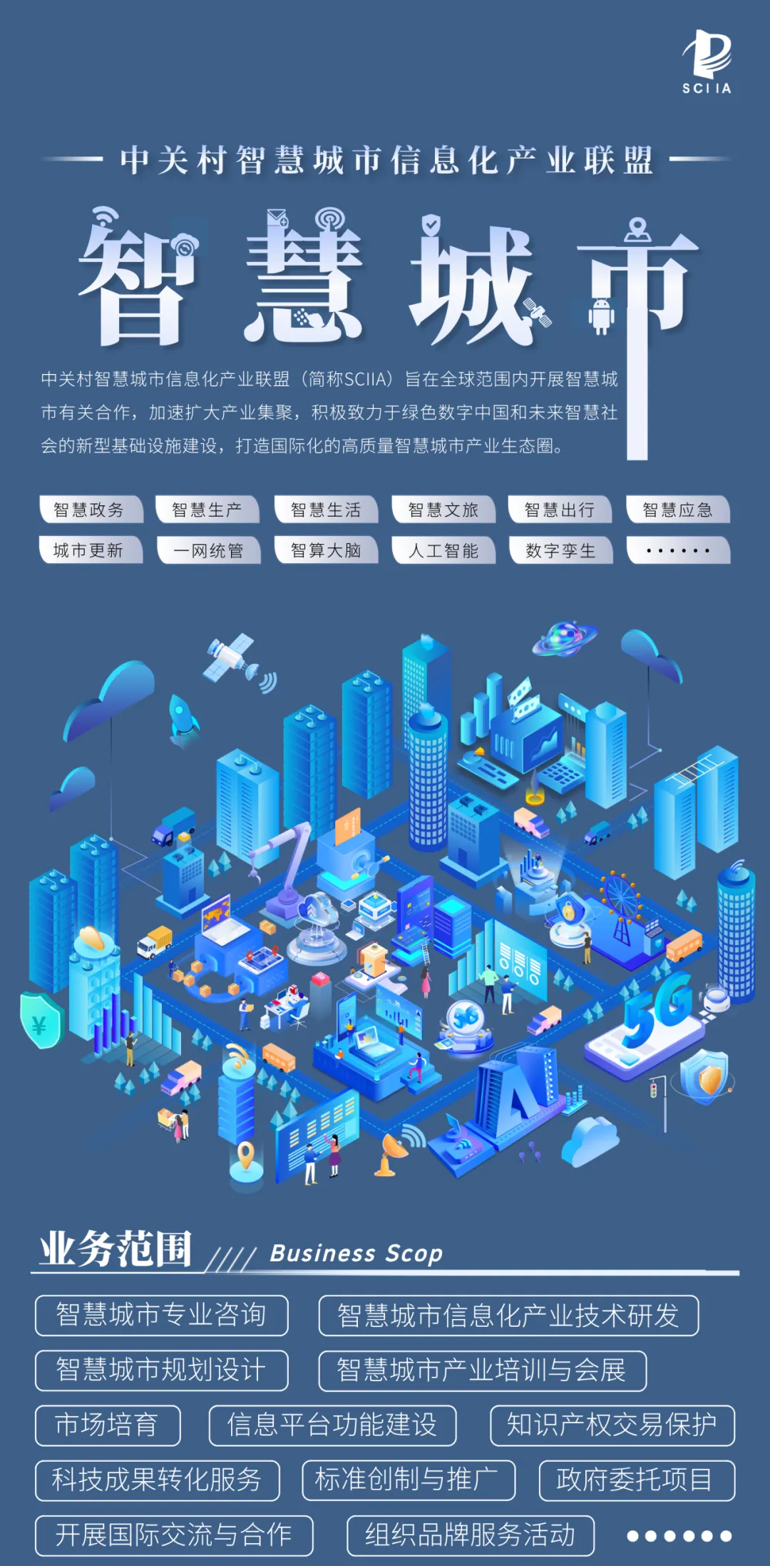 中关村智慧城市信息化产业联盟(ZhongGuanCun Smarter City Information Industry Alliance ,简称SCIIA)是成立于2015年,具有独立法人资格活动地域为全国的4A级社会组织,现有成员单位涵盖国内外智慧城市领域科研、制备、应用、检测和服务等方面的知名机构、大学、企事业单位。