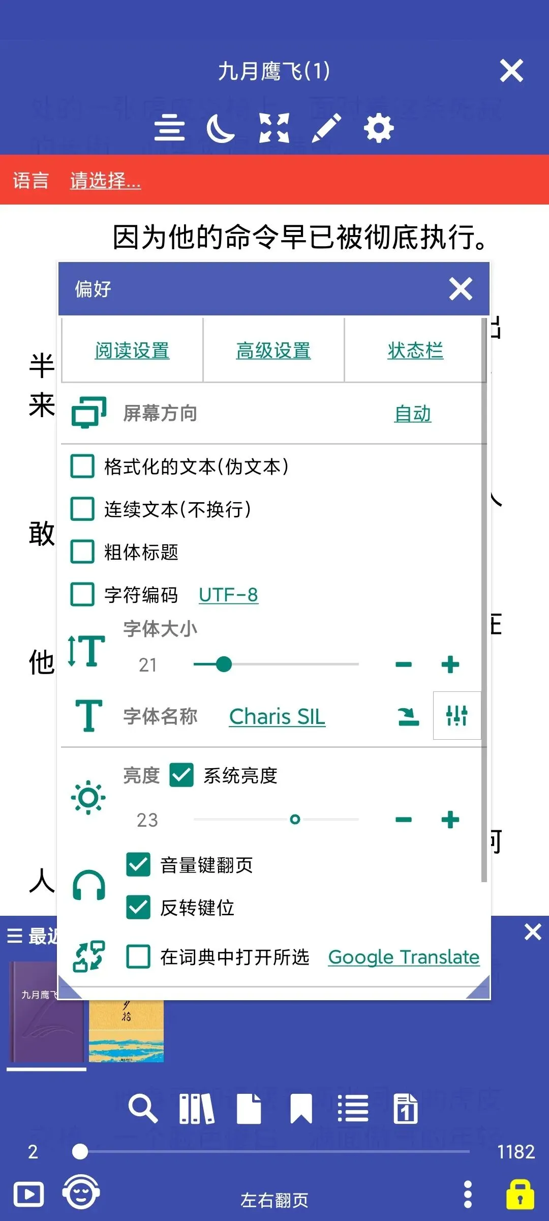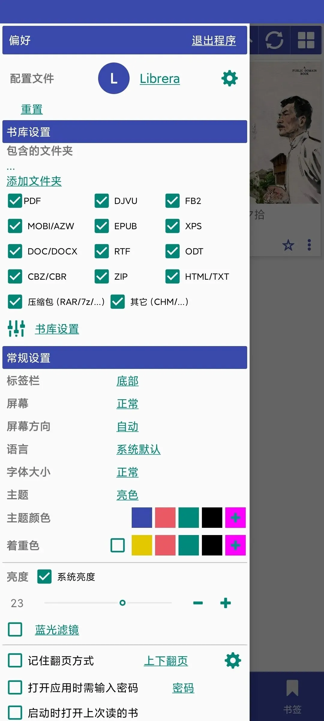 还能调目录、字体大小、亮度、翻页模式,蓝光滤镜护眼睛,音量键翻页、书签收藏、启动密码锁,细节拉满,用着非常顺手。