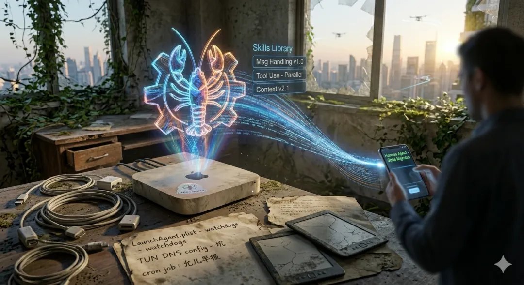 我现在用 Hermes,觉得比小龙虾好用,但我对它的感情刻意浅一些。