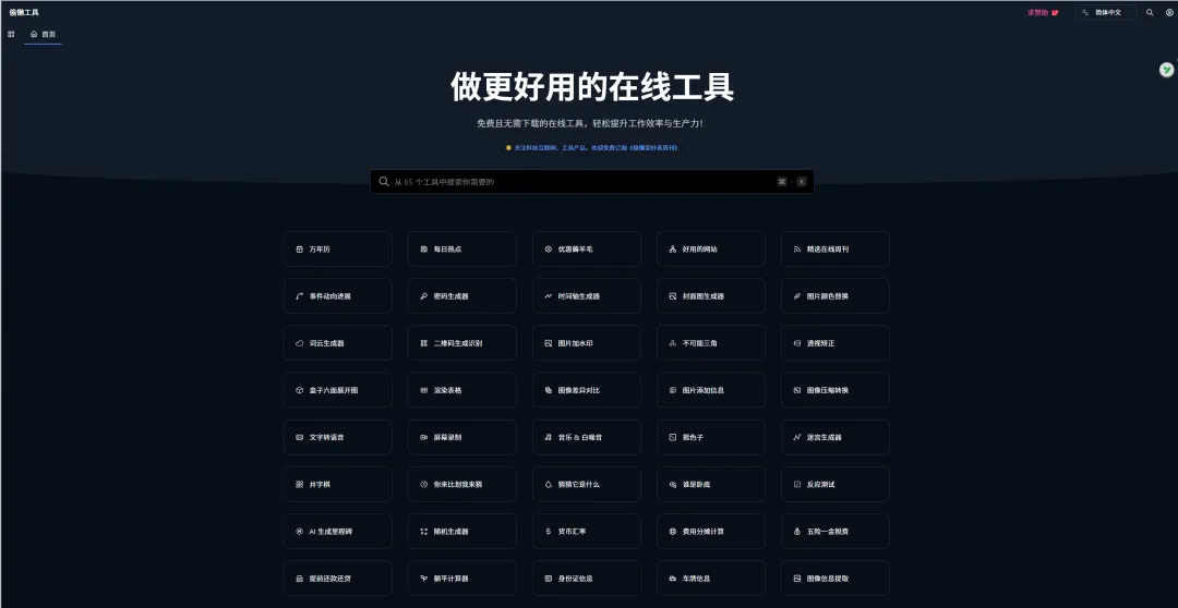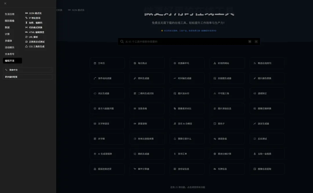 打开网站,你不会看到满天飞的弹窗广告,映入眼帘的是分类清晰、极其硬核的工具矩阵。