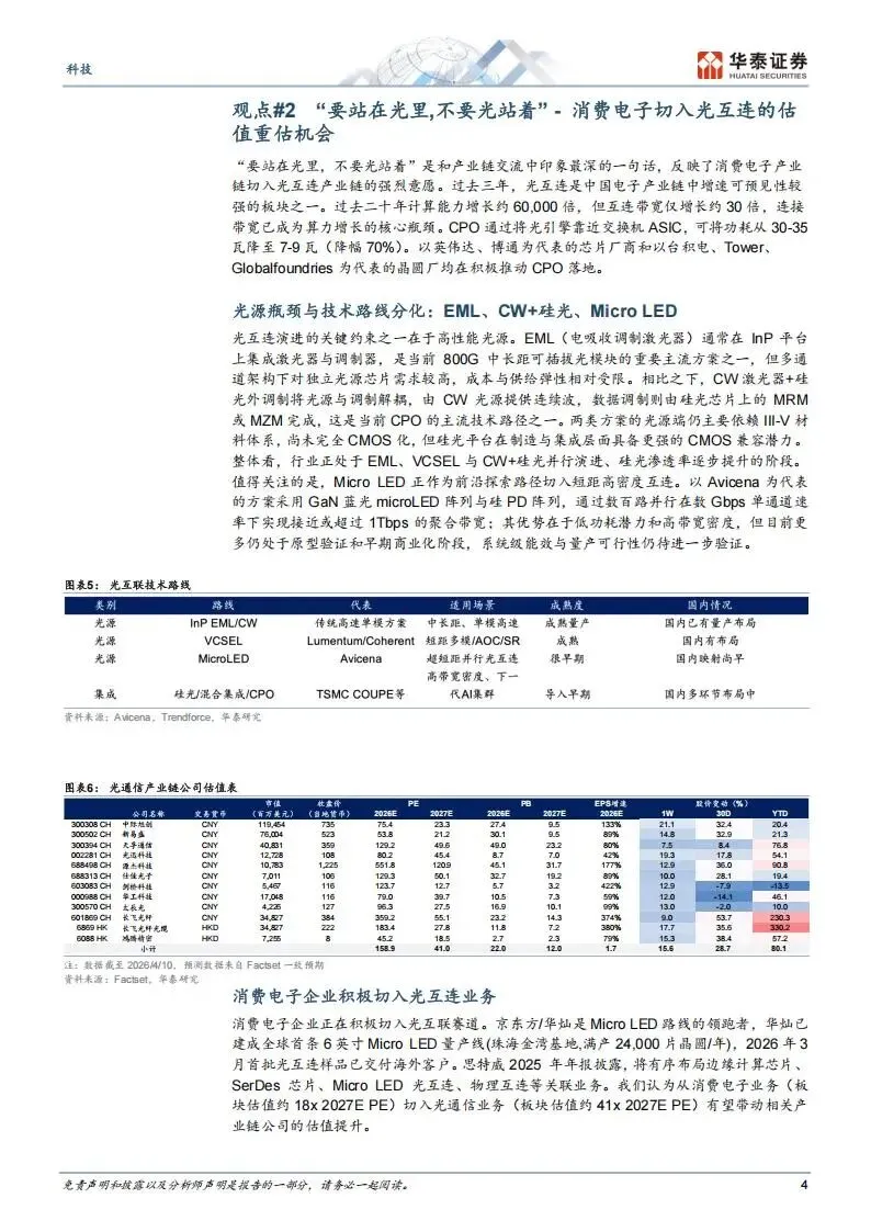 “要站在光里,不要光站着。”这是华泰证券调研团队在走访中印象最深的一句话,它反映了消费电子产业链公司切入光互连领域的强烈意愿。