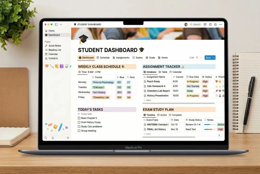 代表产品: Student Planner / Study Tracker销量: 5,000-8,000 份定价: $9-29(低价走量)核心功能: 课表 + 作业追踪 + 考试复习 + 笔记模板