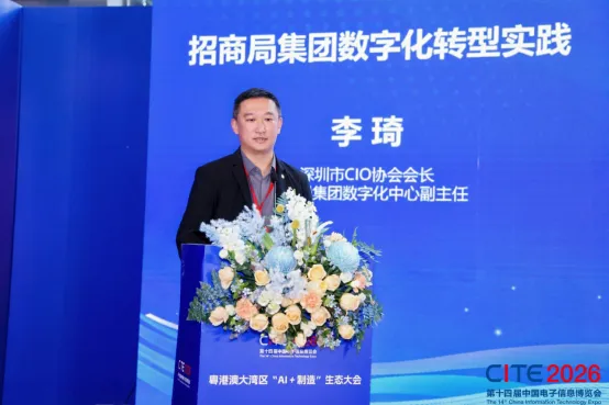 深圳市CIO协会会长、招商局集团数字化中心副主任李琦系统回顾了招商局从2018年基础薄弱到2025年全面数智化的跨越式发展历程。他以“AI+全链条”为核心关键词,分享了集团如何构建“五全体系”全面推进人工智能工作——从算力底座(245 PFlops算力)、智能体平台(3738个智能体)到知识库建设(40万个知识库),让AI深度嵌入物流、港口、金融、园区等多元场景。他特别强调,招商局正通过AI全链条场景清单梳理专项行动,将AI能力从单点应用推向全产业、全管理的系统性渗透,实现从集团管控深化到产业升级的全面赋能。