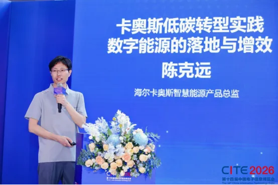 海尔卡奥斯智慧能源产品总监陈克远展示了“能碳大模型”如何将绿色低碳基因注入智能制造。他介绍,卡奥斯基于30余年能源管理经验、4700余个机理模型和80TB工业数据,打造了首个源自可持续灯塔工厂实践的千亿参数能碳大模型。通过源网荷储一体化与AI算法的深度调优,卡奥斯不仅助力海尔打造了17座灯塔工厂(含中国本土首座“可持续灯塔工厂”),更将能力对外赋能,从大金集团的零碳工厂创建到中航锂电的31%综合节能率,让“降碳”与“增效”从矛盾体变为共生体,为制造业绿色转型提供了可复制的“灯塔方案”。