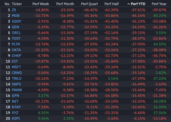 整个软件板块几乎哀鸿遍野,普遍陷入抛售,能保持正收益的软件股已经凤毛麟角。