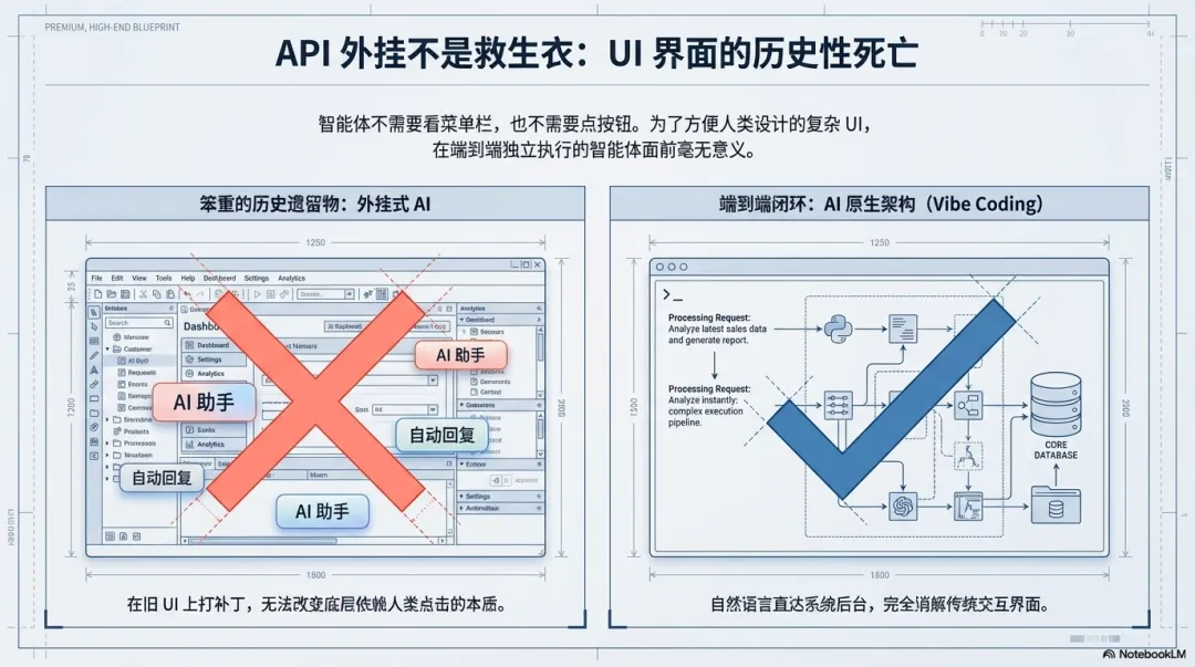 一旦智能体具备了这种能力,再回头看传统软件界面里那些为了方便人类设计的复杂按钮、菜单栏、嵌套页面,以及各种所谓的外挂助手,它们会迅速从“有用的操作界面”变成“笨重的历史遗留物”。