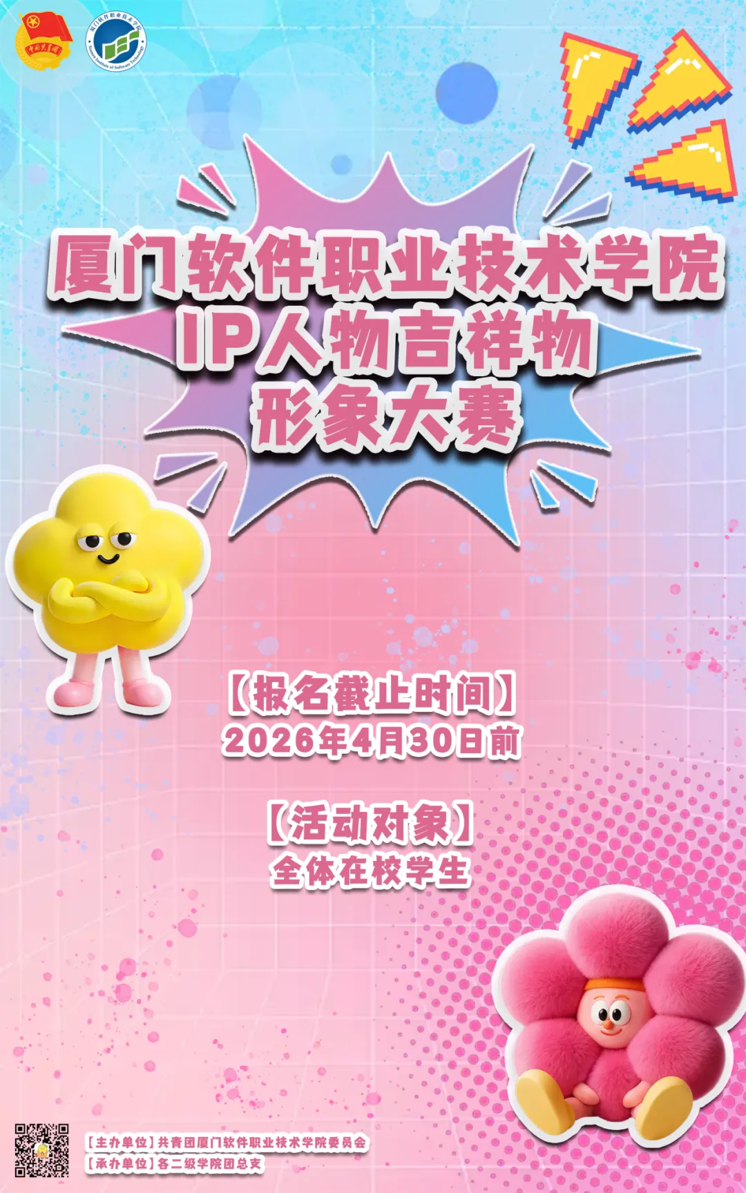 为深化校园文化建设,塑造具有高度辨识度、凝聚力和传播力的校园文化符号,展现我校师生青春昂扬、积极向上的精神风貌,校团委现面向全体学生开展校园IP形象设计大赛。
