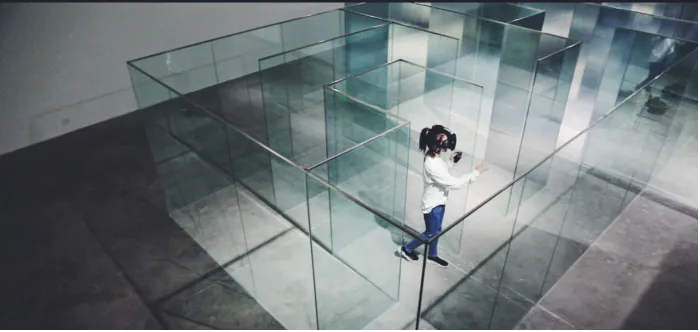 《神动迷踪》里,答案藏在一个词里:动作。这是一座由多屏投影构成的“时间迷宫”。九位自主智能体,在同一空间的不同时间层里巡游。它们没有台词,没有表情,只有持续的移动:靠近与拉开,成群与落单,停顿与转向。现场没有辩论,只有沉默的投票。