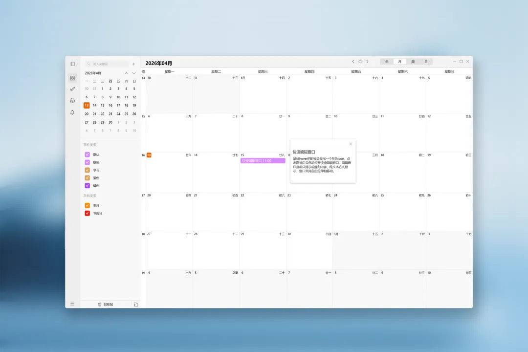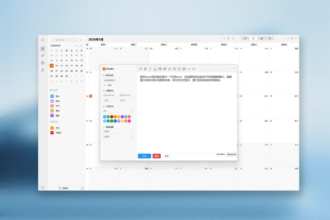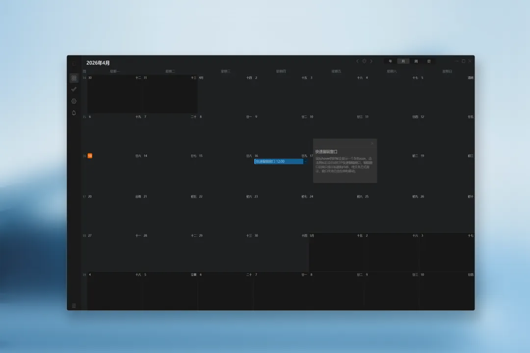2. 月周日视图,增加快速修改窗口