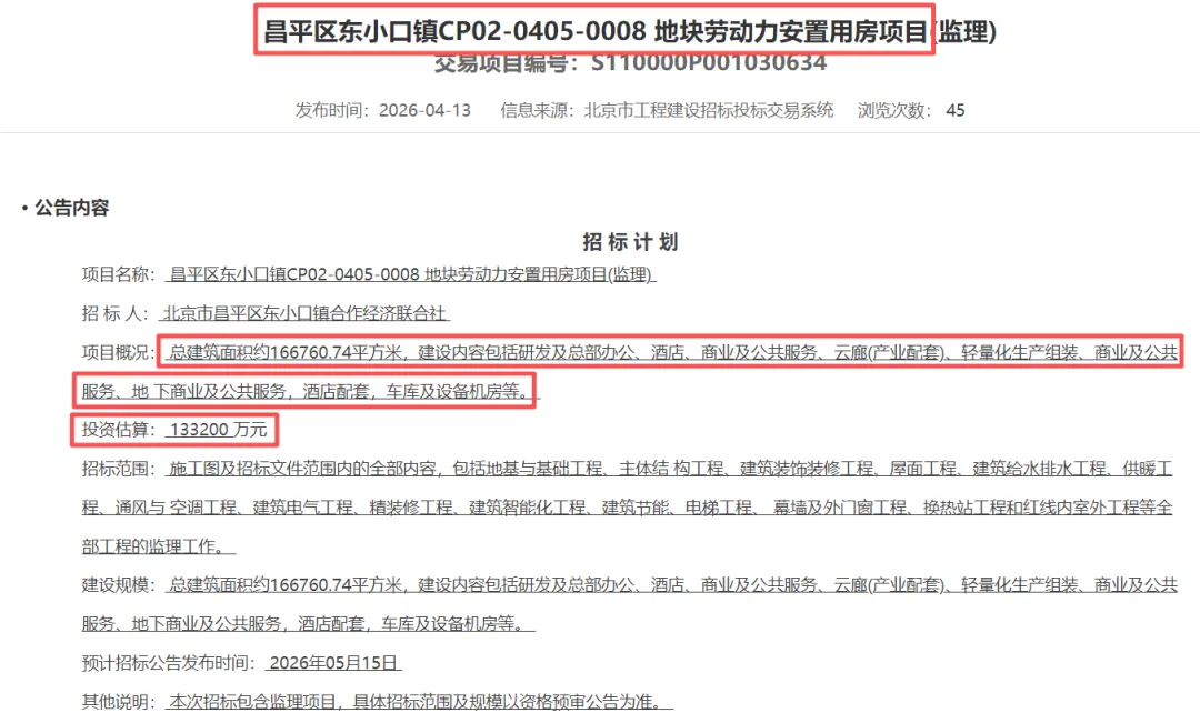 来源:北京市公共资源交易平台、我们的东小口、中软国际、昌平生活攻略,素材来源官方媒体/网络媒体/侵删