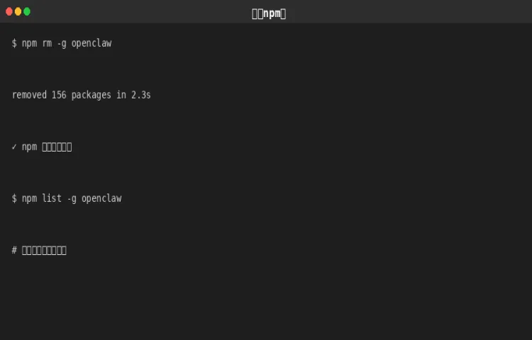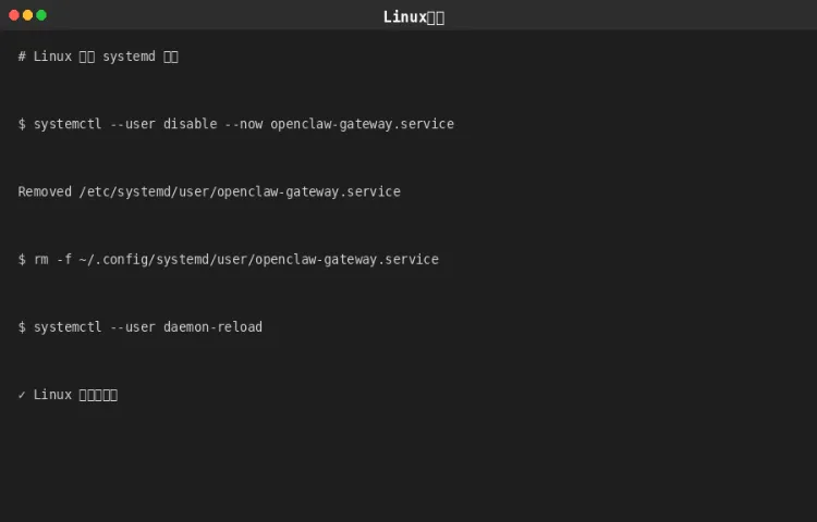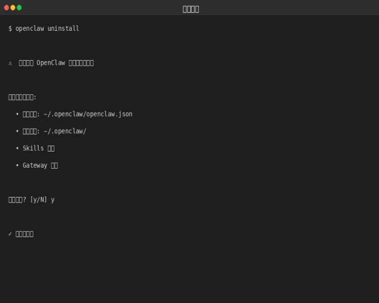 最简单的方法是使用 OpenClaw 自带的卸载命令,会自动清理所有相关文件。