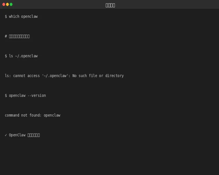 执行以下命令验证 OpenClaw 已完全卸载: