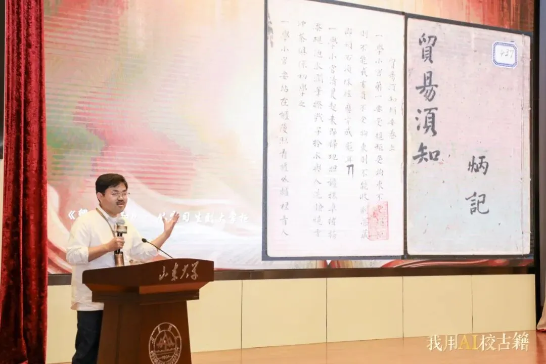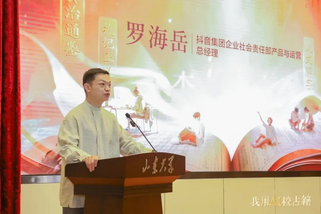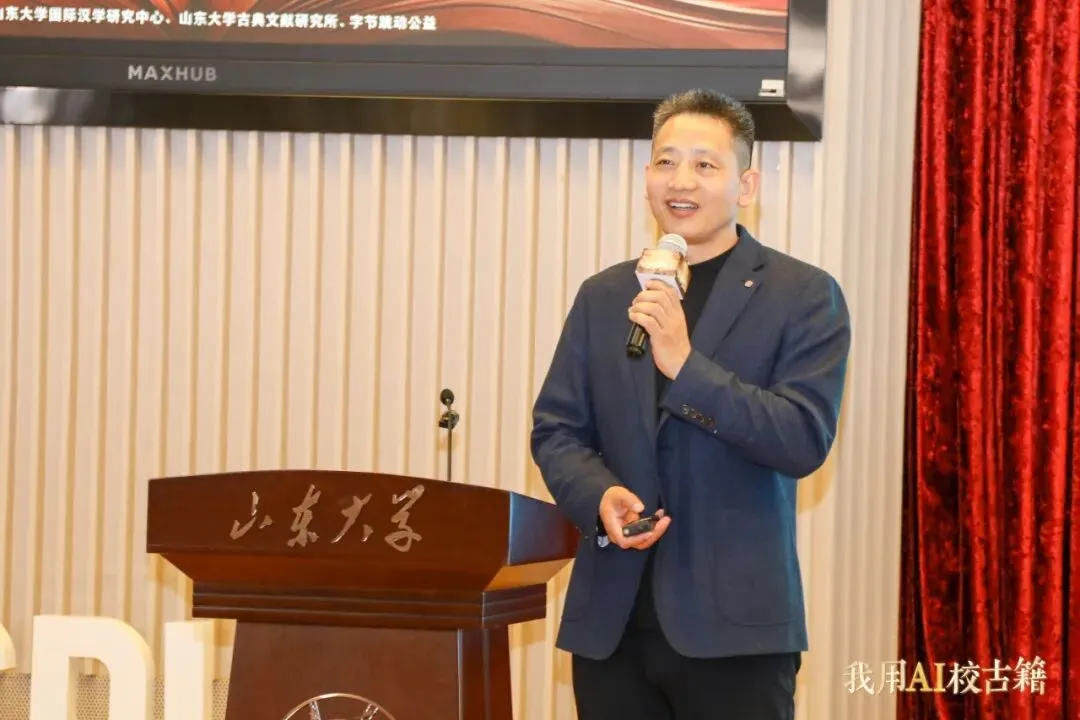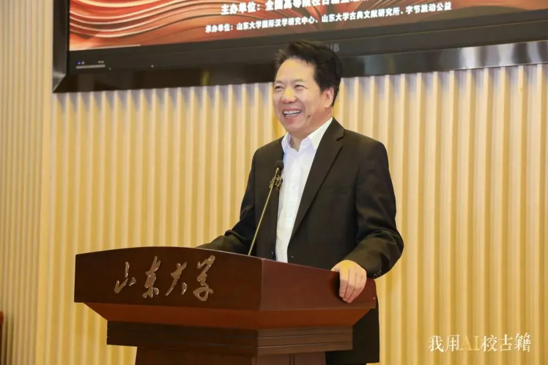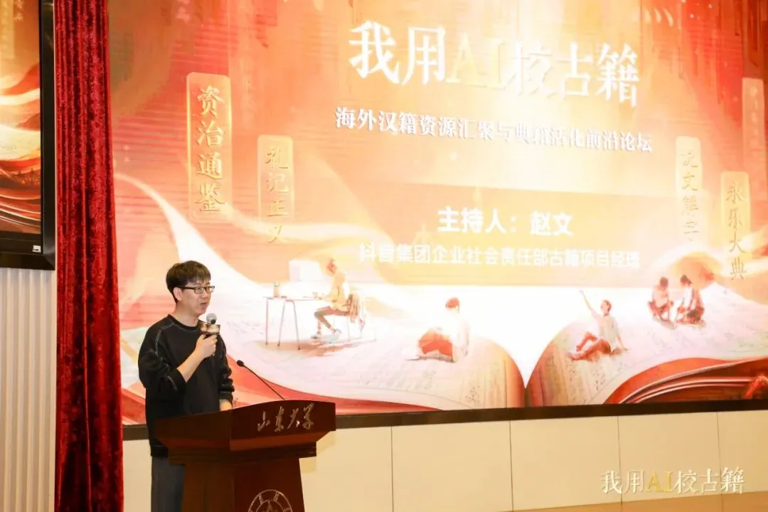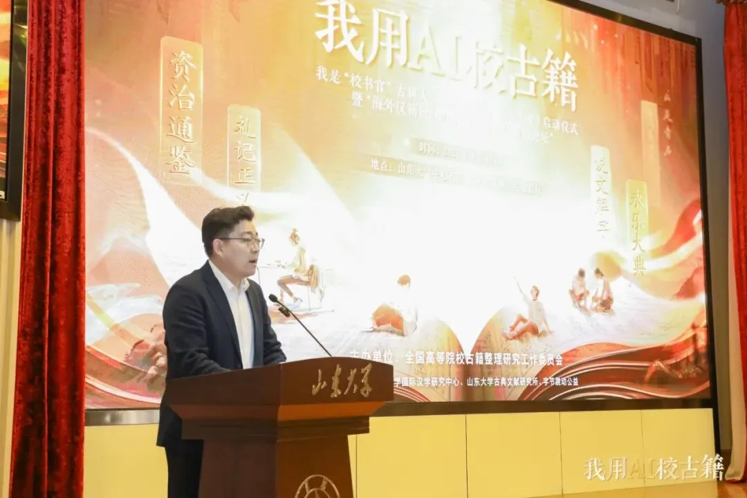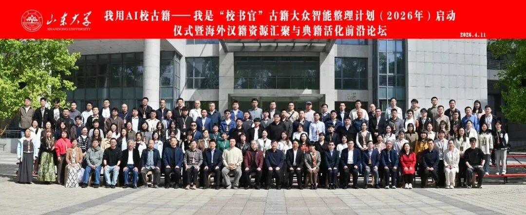 2026年4月11日,“我用AI校古籍”——我是“校书官”古籍大众智能整理计划启动仪式暨“海外汉籍资源汇聚与典籍活化前沿论坛”在山东大学中心校区举行。活动由全国高等院校古籍整理研究工作委员会主办,山东大学国际汉学研究中心、山东大学儒学高等研究院古典文献研究所、字节跳动公益联合承办。教育部语言文字应用管理司副司长王晖,山东大学副校长曹现强,全国高等院校古籍整理研究工作委员会秘书长卢伟、副秘书长吴国武,山东省教育厅语言文字工作处处长赵世团,山东大学人文社科研究院院长郑敬斌,山东大学国际汉学研究中心主任刘心明,山东大学古典文献研究所所长王承略,以及领域内知名专家学者、抖音集团企业社会责任部相关负责人、志愿者代表、抖音创作者等150位嘉宾出席活动。