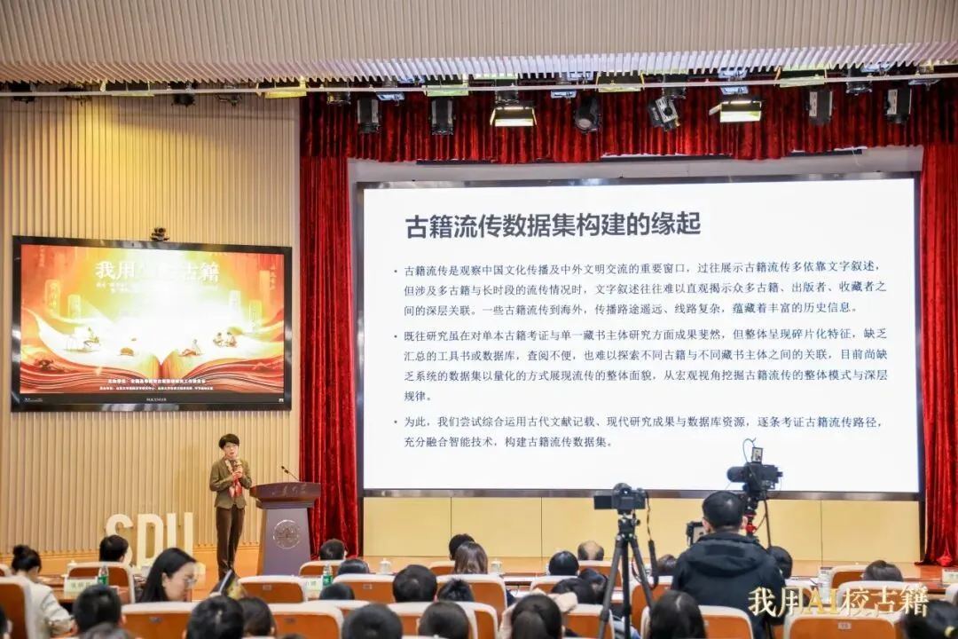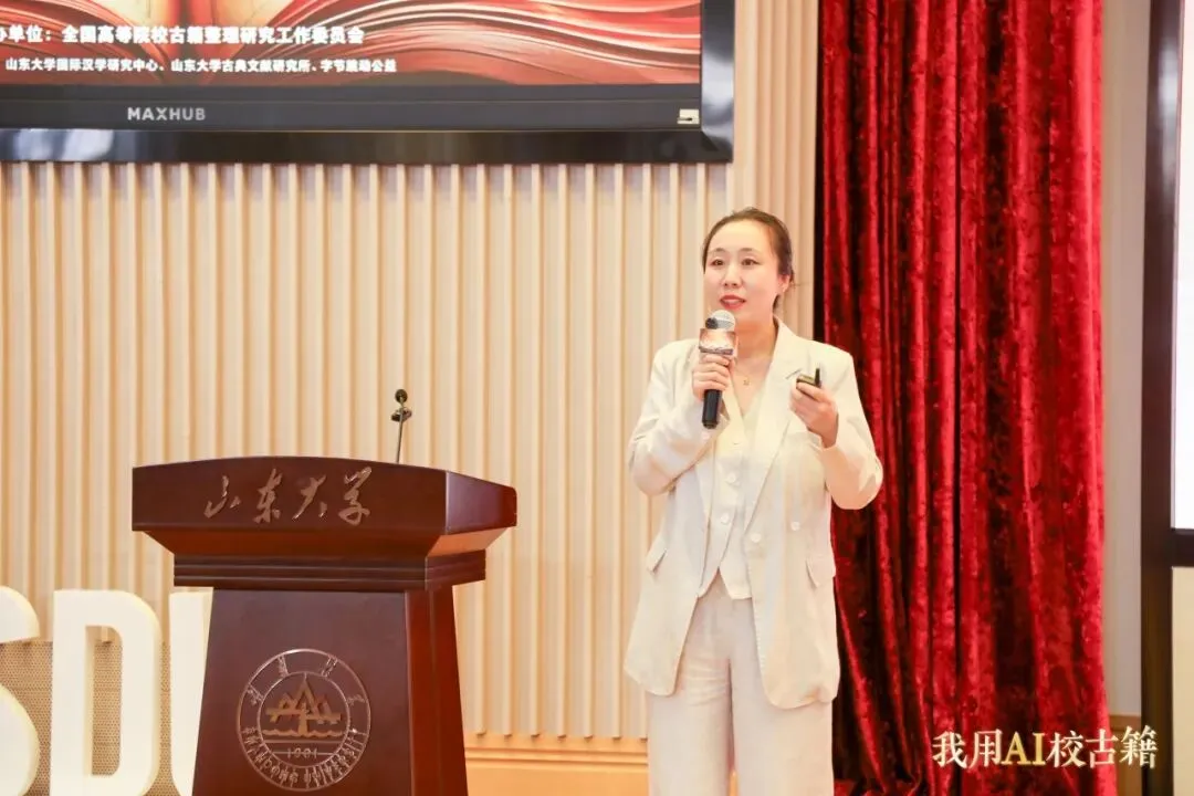 主题报告环节由山东大学古典文献研究所王小婷教授主持,多位专家学者围绕古籍大数据构建、OCR与语义协同、文本化整理等前沿方向作专题报告。