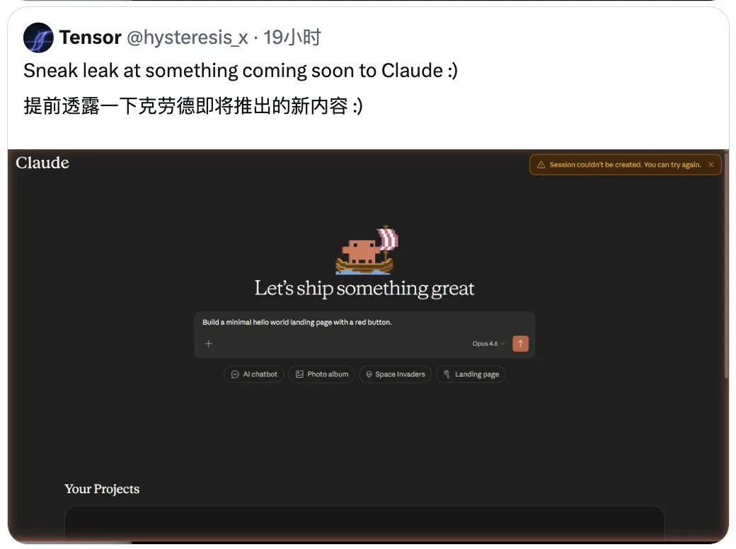 网友 Tensor 发了一张截图,泄露了 Anthropic 即将上线的新功能。