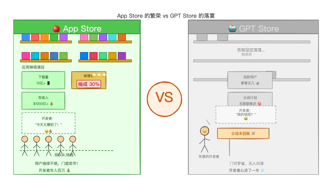 而 GPT Store 的逻辑,其实是想要复刻一个已经被验证过的成功模式:Apple App Store。