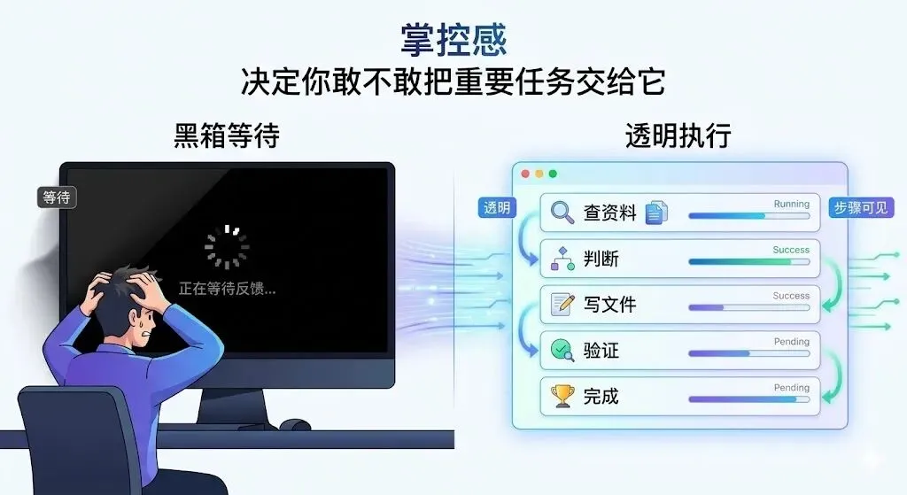 很多人用 AI 工具时,最焦虑的点不一定是“它能不能做”,而是“我不知道它做到哪了”。