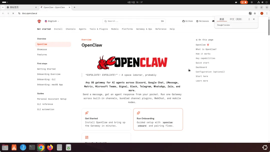 打开浏览器,访问 https://docs.openclaw.ai