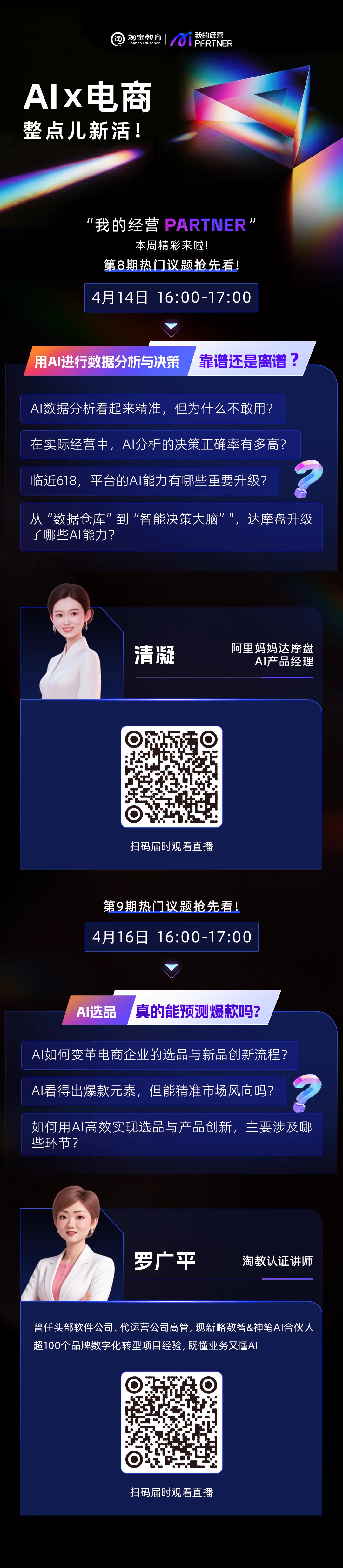 “我的经营PARTNER”栏目重磅来袭,本周我们将深度拆解AI数据分析、AI选品与创新两大核心场景,直面商家“信不过、用不好、怕踩坑”的真实困境。