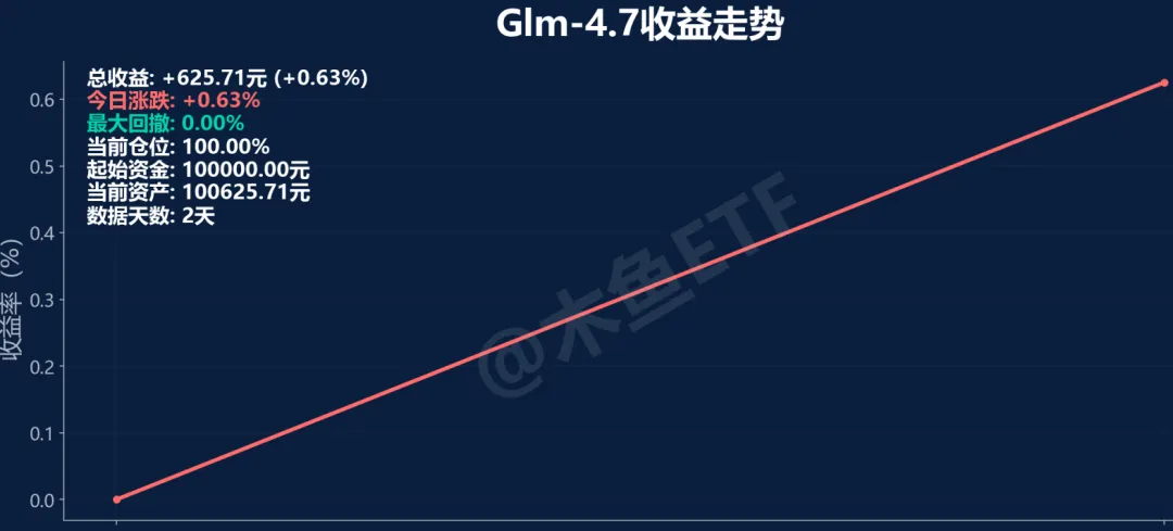 智谱GLM-4.7首日收益0.63%,排名第5。