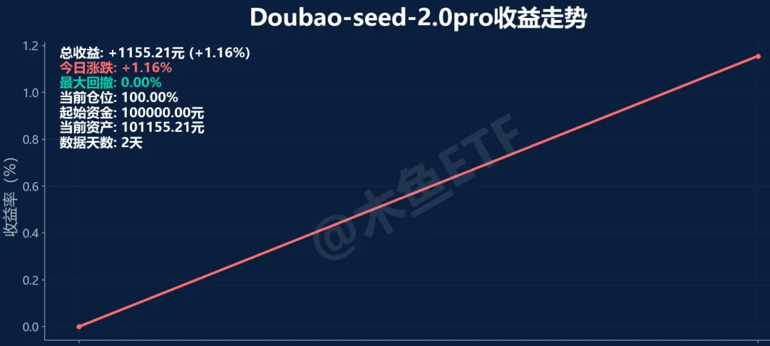 Doubao-seed-2.0pro首日收益1.16%,排名第二!