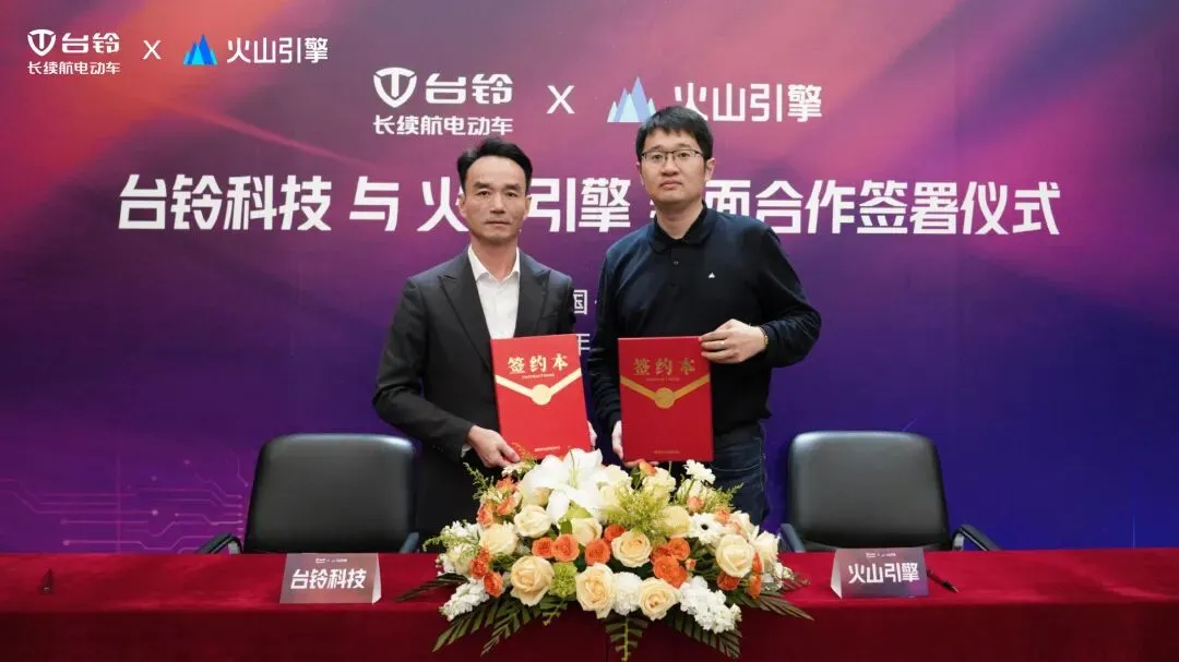 4月11日,台铃与火山引擎正式签署全面合作协议。双方将依托火山引擎在人工智能大模型、AI Agent、云计算等领域的核心技术优势,携手推进台铃人工智能战略规划与全场景应用落地,打造两轮电动车行业AI转型范本,共筑AI智造新生态。