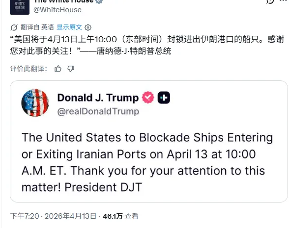 5、特朗普准备晚上10点钟封锁霍尔木兹海峡