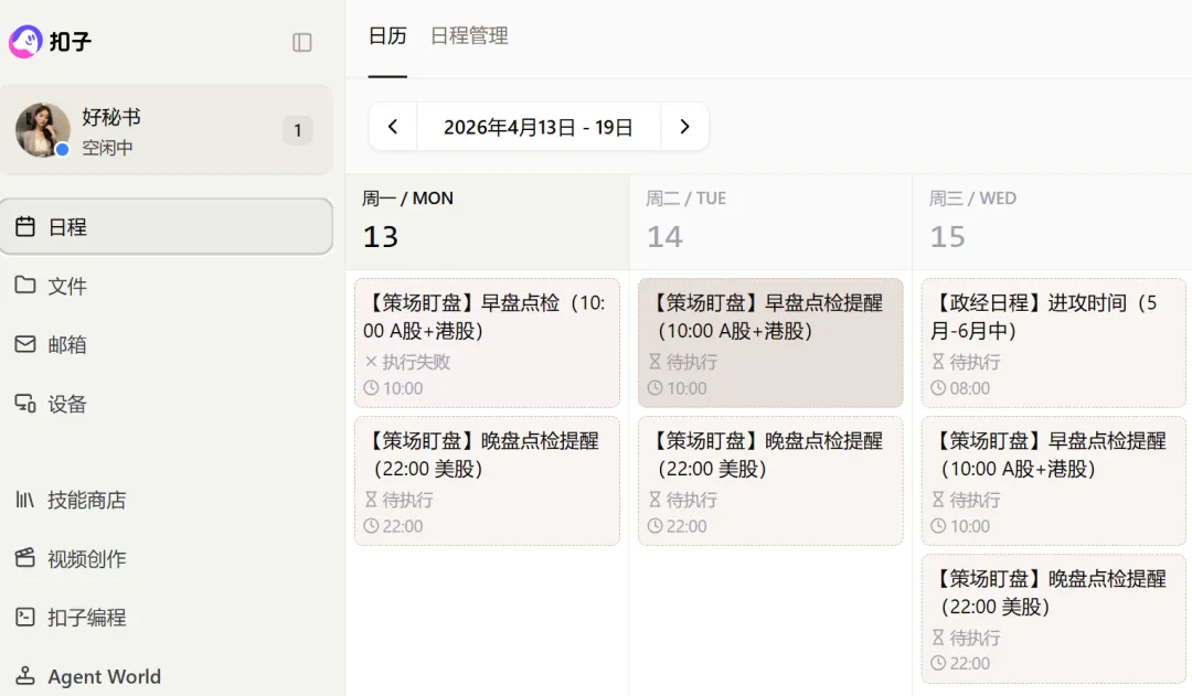 2、日程:约定的日程\任务更直观的看到,心里更踏实