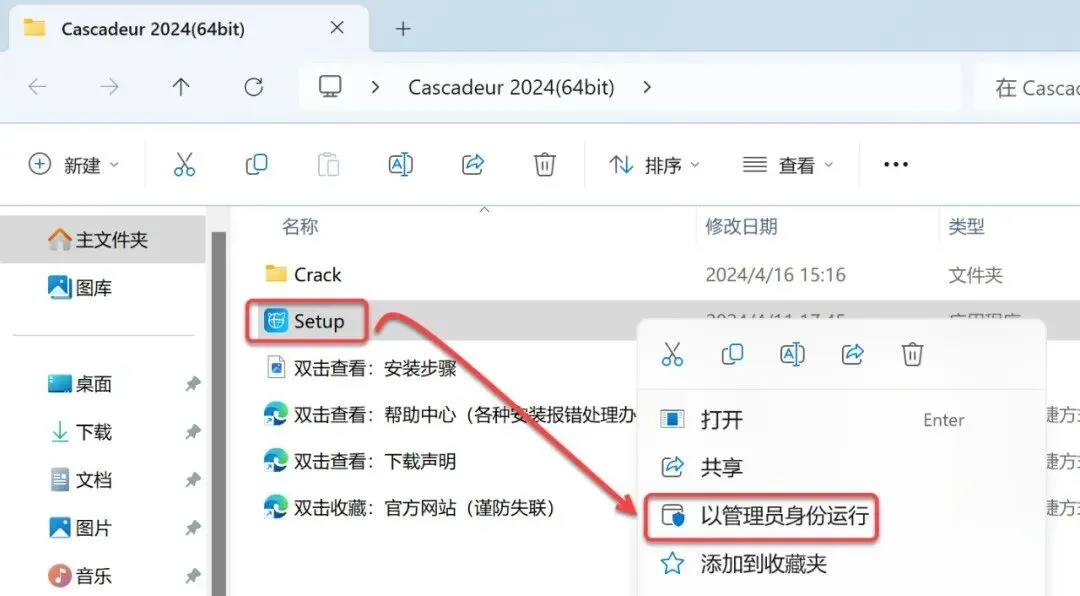 2.打开解压后的文件夹,鼠标右击【Setup】选择【以管理员身份运行】。